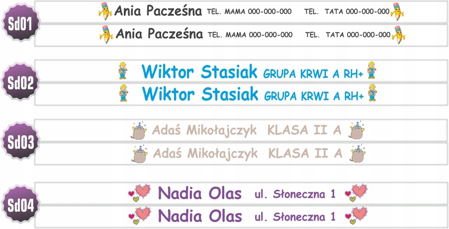 Smycze imienne dla dziecka stanowią bezpieczny gadżet informacyjny. Produkt można wykorzystać i przypiąć do piórnika, plecaka, kluczy, telefonu. Wybierz motyw i podaruj personalny prezent. Technika sublimacji umożliwi naniesienie kontrastowych, wyrazistych kolorów. Na życzenie umieścimy dowolny napis. Imienniki szkole nie są jednorazowym produktem a raczej formą upominkową, którą dziecko zapewne wykorzysta w szkole lub w domu.